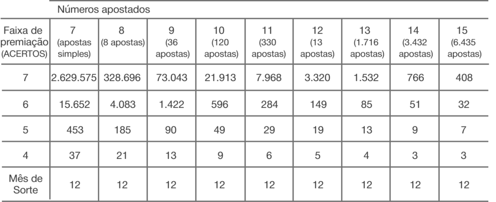 – 10% restantes são acumulados e distribuídos aos acertadores dos 7 números nos concursos de final 0 ou 5.
