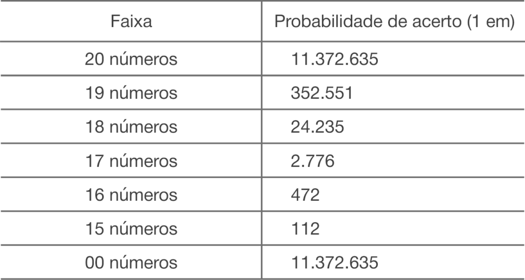 – 8% entre os acertadores de nenhum dos 20 números sorteados – 7ª faixa;