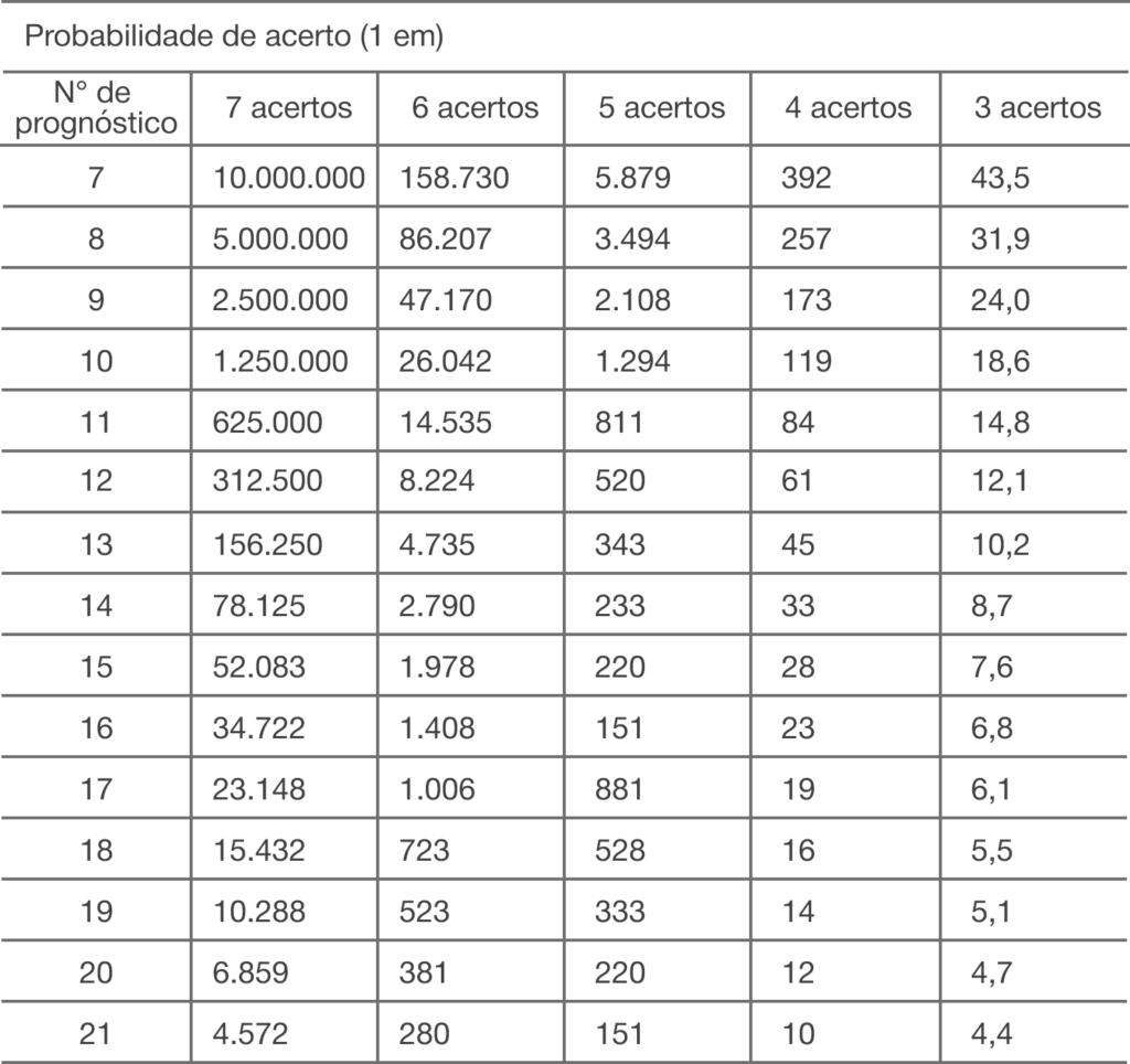 – 15% entre os acertadores de 6 colunas com prognósticos certos entre os 7 sorteados;